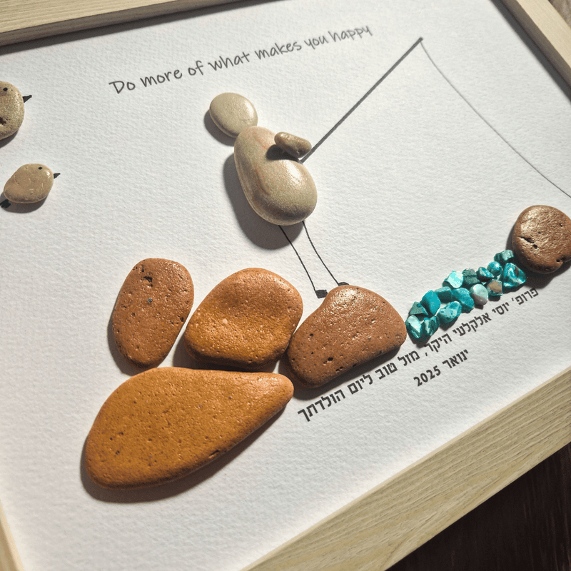 לפני שאני מתחילה להדביק אבן אחת, אני שולחת לכם סקיצה ראשונית. ככה תוכלו לראות בדיוק איך היצירה תיראה ולבקש שינויים אם צריך. זה הזמן לוודא שהכל מושלם.