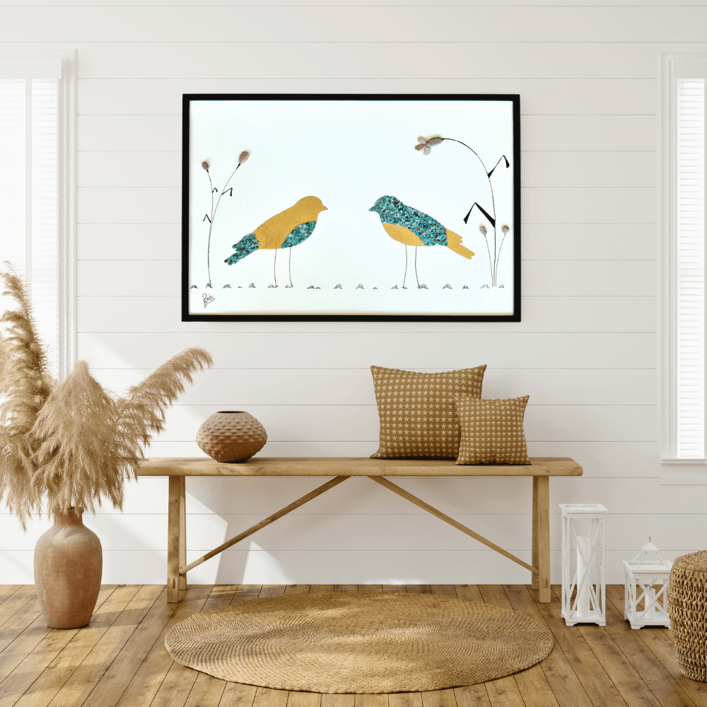 "ואנחנו שניים" - המשמעות: ציירתי שתי ציפורים שמשלימות זו את זו, כמו שני חצאים של שלם. לא העתקה, לא הדפס ממוחשב - אלא יצירה אמיתית שנוצרה באהבה ובידיים.